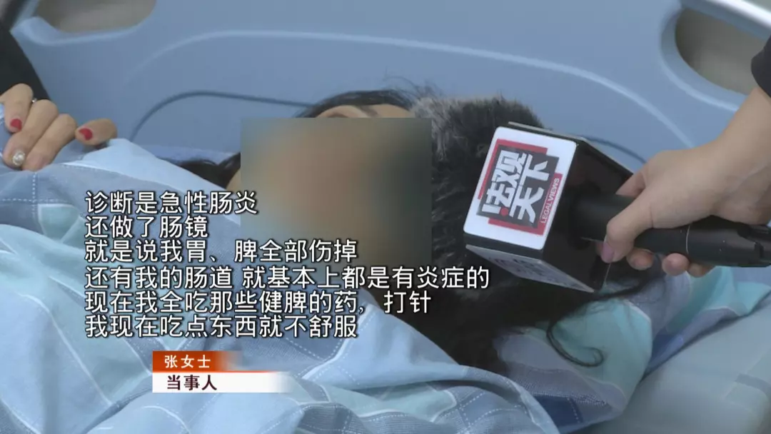 可是繼續(xù)服用酵素后,張女士發(fā)現(xiàn)身體情況還是不對(duì)勁,當(dāng)她再找楊女士進(jìn)行反映時(shí),對(duì)方竟然把自己拉黑了。無(wú)奈之下,張女士找到了廣東天成健康管理有限公司的相關(guān)負(fù)責(zé)人,對(duì)方提供了一些中藥讓張女士服用。吃了幾副藥后,張女士的病情仍然未見(jiàn)好轉(zhuǎn),一月底,張女士住進(jìn)了醫(yī)院。一檢查,張女士發(fā)現(xiàn)自己一下瘦了二十斤,但是身體狀態(tài)大不如前,如今甚至要服用抗抑郁的藥物才能入睡。