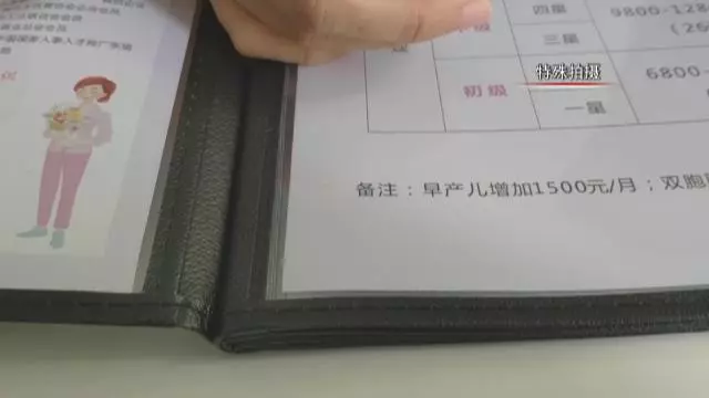 這家家政公司把核心業(yè)務(wù)直接鎖定在月嫂服務(wù),看到有顧客前來,工作人員稱公司剛剛換了新的價(jià)格牌。價(jià)格單顯示,月嫂一般工作周期為26天,初級(jí)月嫂即一星二星級(jí),薪資從6800到9800,金牌服務(wù)則在12800到2萬元。