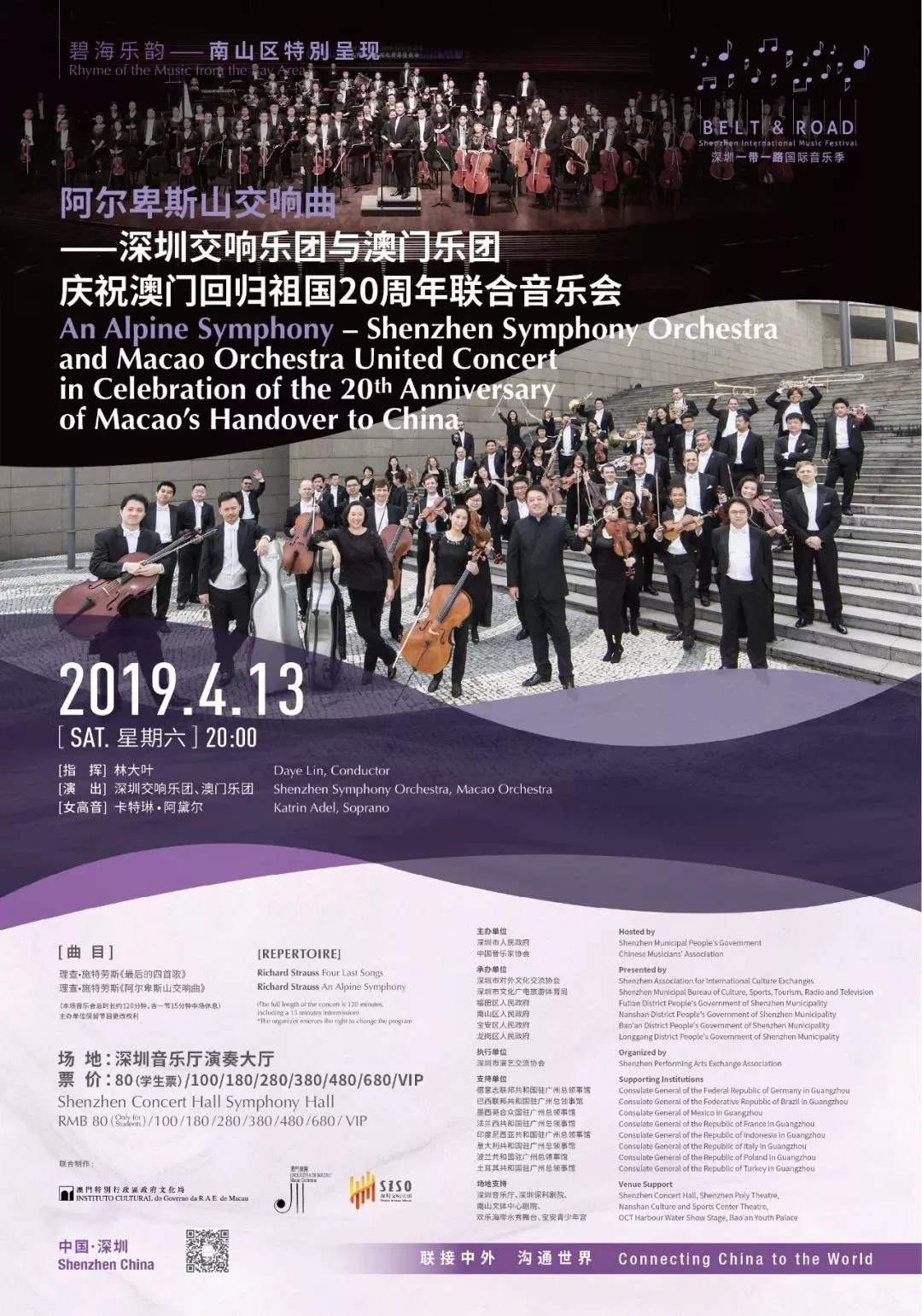 慶祝澳門回歸20周年,澳門樂團與深圳交響樂團聯(lián)袂演出《阿爾卑斯山交響曲》音樂會,奏響深澳藝術交流與合作新樂章!