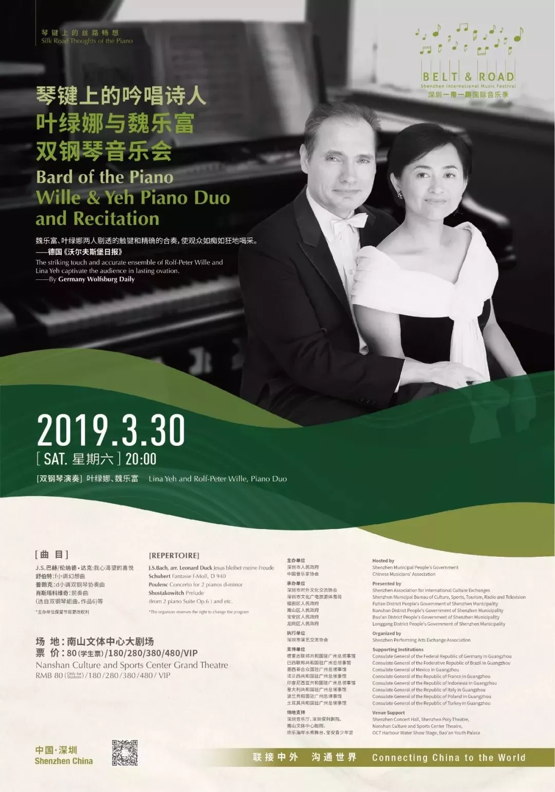 魏樂富與葉綠娜,來自中國臺灣的音樂伉儷,兩人的合作從音樂到文學,精彩演奏與深情吟誦展露出琴鍵上的吟唱詩人氣質。