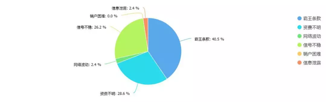 在網(wǎng)民反映的問題中,霸王條款、資費(fèi)不明、信號不穩(wěn)等問題占據(jù)較高比例,其中霸王條款的認(rèn)同率高達(dá)40.5%。值得思考的是在各大運(yùn)營商推廣5G的同時卻還會存在信號不穩(wěn)定的問題,信號不穩(wěn)定是否會影響到5G今后的平穩(wěn)發(fā)展。