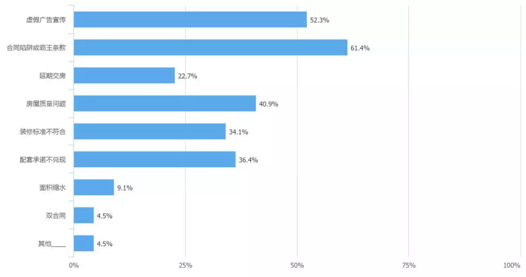 調(diào)查結(jié)果顯示,房產(chǎn)糾紛主要集中在購買一手房、二手房和房屋裝修上,分別占比38.6%、27.3%、27.3%,而且將近70%的消費(fèi)者對房產(chǎn)交易過程中的相關(guān)知識和風(fēng)險只是了解一般。同時,消費(fèi)者在新建商品房和二手房交易過程中遇到的糾紛在問卷結(jié)果中顯示都是多方面的。其中,新建商品房交易陷阱主要是“合同陷阱或霸王條款”、“虛假廣告宣傳”;二手房交易陷阱主要是“隱瞞房屋缺陷”。針對如何避免購房糾紛,50%以上的消費(fèi)者認(rèn)為“購房前咨詢朋友、專家”和“購房前多學(xué)習(xí)房產(chǎn)知識,防止受騙”是最好的辦法。