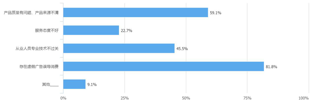 消費者們認為美容美發(fā)行業(yè)中存在最大的問題是虛假廣告誤導消費,第二則是產(chǎn)品質(zhì)量問題和產(chǎn)品來源不清。(常軍平/鄭媛/姚苑/田晨夕/曹園芳/田志強/潘寶儀)