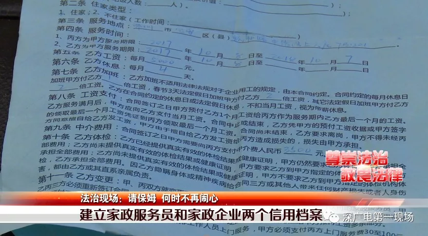 趙坤:合同明明白白,責任清清楚楚,有糾紛按照合同約定走。但話又說回來,請保姆是為了讓自己省心省事,誰也不想出了事,鬧到最后對著合同約定一條條論責任。如果市民請保姆,能方便清楚的知道我要請的保姆是否有犯罪記錄?是否有病史?家政公司信譽怎么樣?是否被投訴過?那才是真省心,對此國家相關部門也出手了。