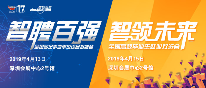 四月的深圳將迎來一波大春招,第十七屆中國國際人才交流大會將于4月14日 -15日在深圳會展中心開幕。作為大會重要組成部分,由智聯(lián)招聘執(zhí)行的2019年“智聘百強(qiáng)”全國名企事業(yè)單位綜合招聘會,及“智領(lǐng)未來”全國高校畢業(yè)生就業(yè)雙選會,將分別于4月13日、4月15日在深圳會展中心2號館舉辦。