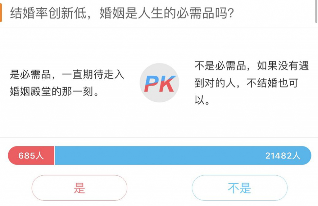 僅有685人認(rèn)為婚姻是必需品