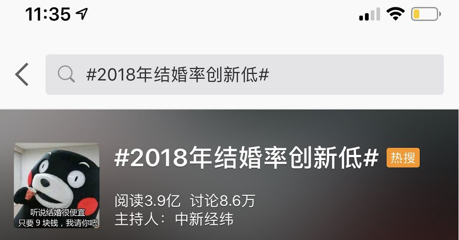 一個新話題 #2018年結(jié)婚率創(chuàng)新低 #