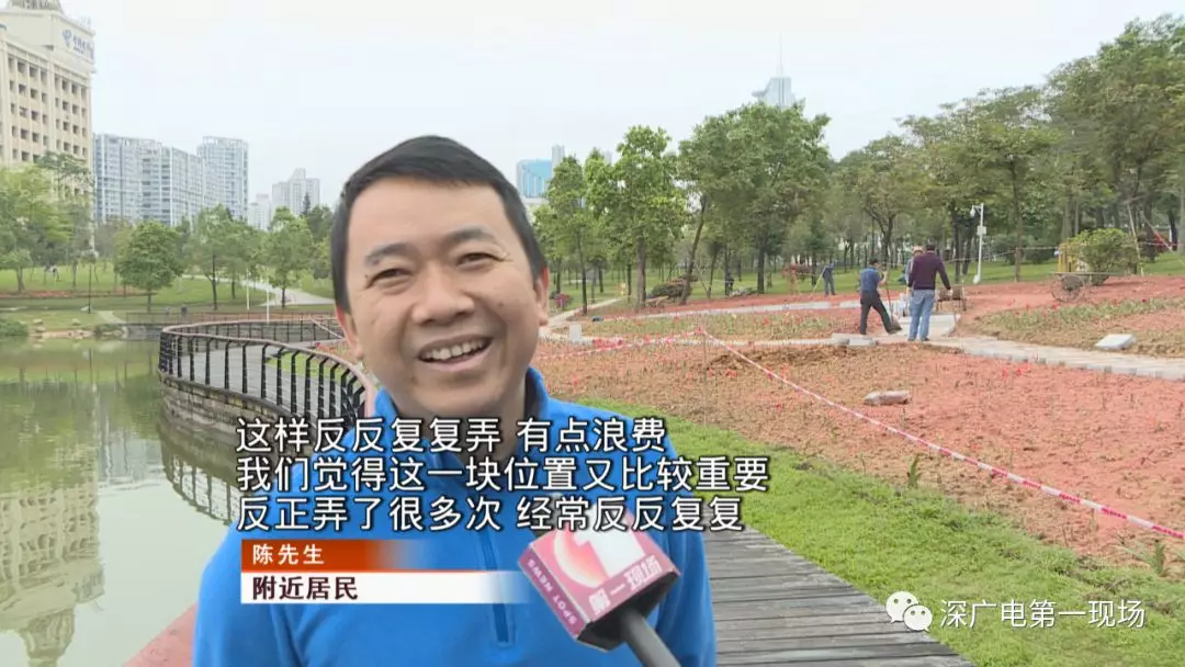 深廣電第一現(xiàn)場(chǎng)2019年3月25日訊 道路反復(fù)開挖是廣大市民對(duì)于城市建設(shè)過程中最不滿意的一種現(xiàn)象。除此之外,把公園里面的綠地來(lái)回折騰也很容易引起人們的質(zhì)疑,最近就有觀眾向《第一現(xiàn)場(chǎng)》反映。中心公園里的一塊草坪,反復(fù)折騰快半年了也沒弄出個(gè)模樣來(lái)這到底是要搞哪出?