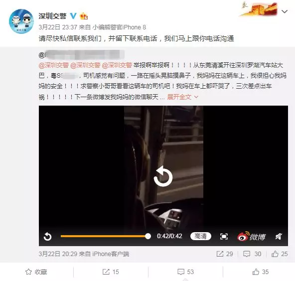 “舉報(bào)啊舉報(bào)啊?。?!大巴車三次差點(diǎn)出車禍!司機(jī)一路搖頭晃腦摸鼻子?。。?!”3月22日晚,深圳交警在微博上接到網(wǎng)友舉報(bào)。