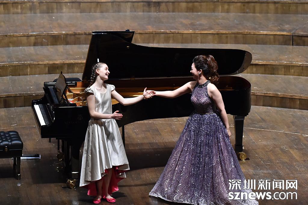 表演結(jié)束,艾瑪·多伊徹和我國青年女高音歌唱家陳麗安互相致謝