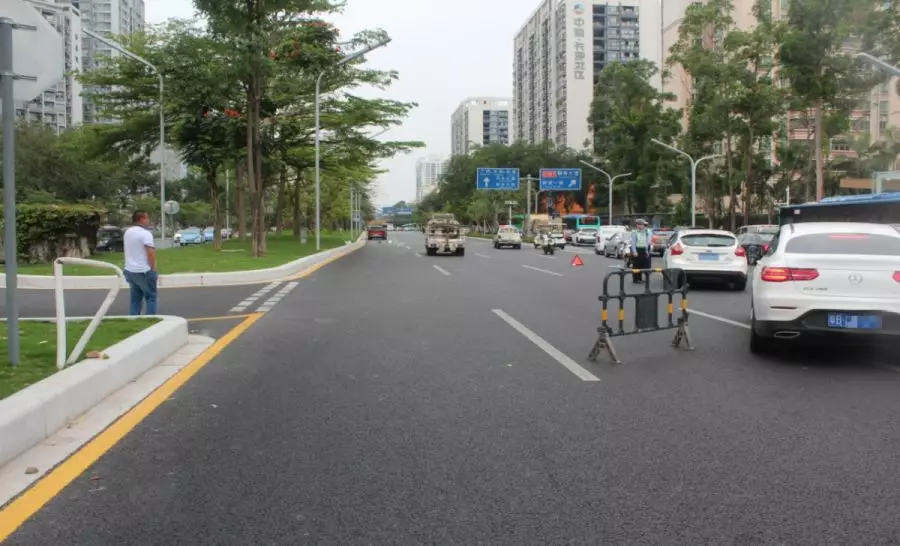 案發(fā)現(xiàn)場(chǎng)位于寶安區(qū)寶安大道新安街道中糧卡羅社區(qū)路段,南往北主道路寬13.72米,該路段設(shè)立有輔道及非機(jī)動(dòng)車道。瀝青路面,照明條件為白天,交通信號(hào)方式為標(biāo)志、標(biāo)線。