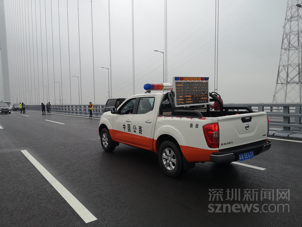 路政車還在橋面上