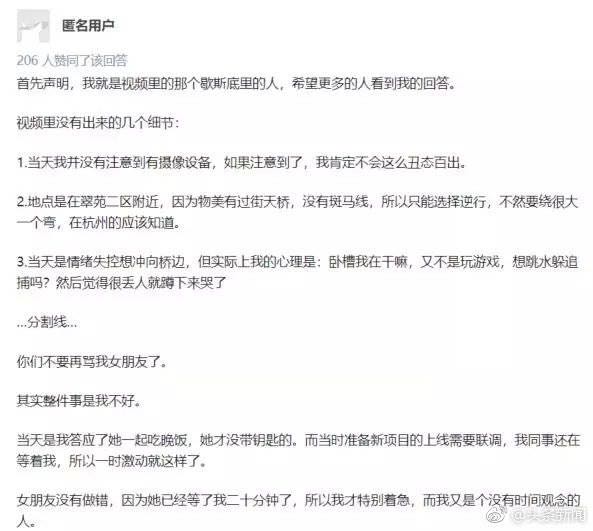 后來(lái),小伙出來(lái)回應(yīng):不要再罵我女朋友了