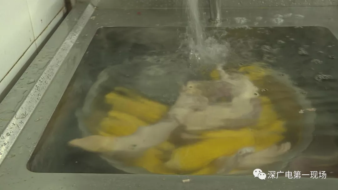 中午12點,記者隨同市監(jiān)寶安局沙井所的執(zhí)法人員對這家蟹王子餐廳進行突擊檢查。才剛進后廚沒多久。執(zhí)法人員就發(fā)現(xiàn)。這做酸菜魚的酸菜。居然泡在了洗碗池!