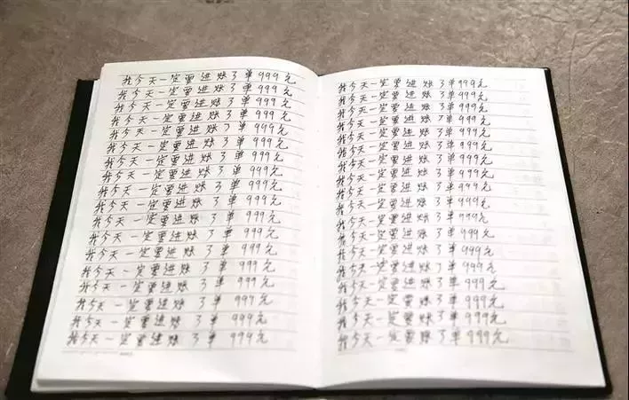在楊某辦公臺(tái)上有一本筆記本,里面整整24頁(yè)寫(xiě)得密密麻麻,卻反反復(fù)復(fù)只寫(xiě)了一句話:“我今天一定要進(jìn)賬3單,999元”。