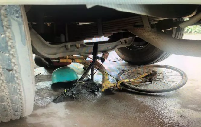 自行車慘遭貨車碾壓,騎車男子被卷入 ...