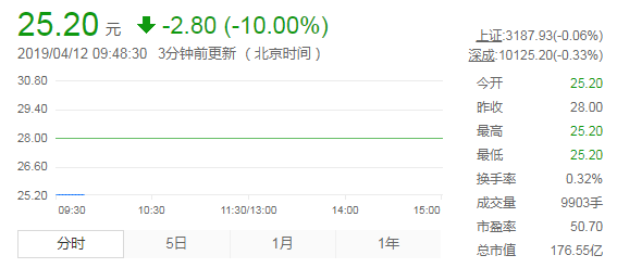 視覺中國4月12日開盤跌停頁面截圖