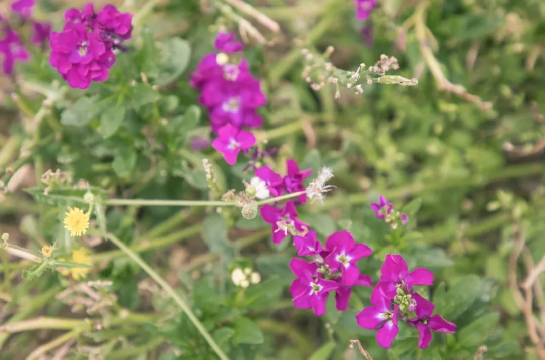 紫羅蘭芳香怡人,因此它還有個別名叫“草桂花”。一株紫羅蘭上會長出好幾朵花,花團簇?fù)淼臉幼?,分外好看?/p>