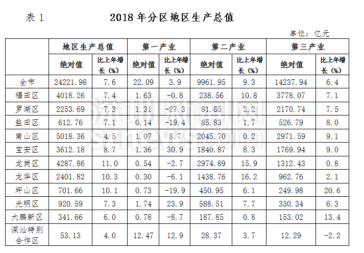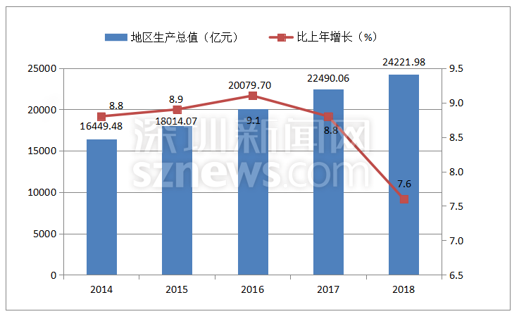 深圳新聞網(wǎng)2019年4月19日訊(記者 劉夢婷 通訊員 胡雪濤)4月19日,記者從深圳市統(tǒng)計局獲悉,深圳市2018國民經(jīng)濟與社會發(fā)展統(tǒng)計公報出爐:全市實現(xiàn)地區(qū)生產(chǎn)總值24221.98億元,比上年增長7.6%,常住人口達1302.66萬人。人均可支配收入57543.60元,居民人均消費支出40535.02元。總體來看,2018年深圳經(jīng)濟運行穩(wěn)健,主要經(jīng)濟指標(biāo)表現(xiàn)良好,高質(zhì)量發(fā)展扎實推進。