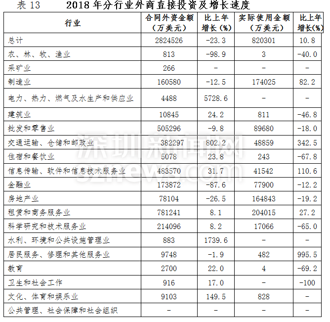 2018年,深圳全市固定資產(chǎn)投資比上年增長20.6%。其中,房地產(chǎn)開發(fā)投資增長23.6%;非房地產(chǎn)開發(fā)投資增長18.4%。分投資主體看,國有經(jīng)濟(jì)投資增長36.7%;民間投資增長12.5%;港澳臺商經(jīng)濟(jì)投資下降22.6%;外商經(jīng)濟(jì)投資增長30.3%。