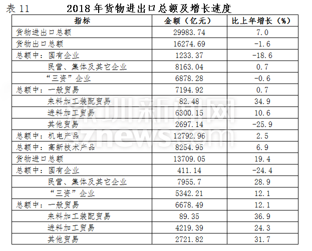 深圳新聞網(wǎng)2019年4月19日訊(記者 劉夢婷 通訊員 胡雪濤)4月19日,記者從深圳市統(tǒng)計局獲悉,深圳市2018國民經(jīng)濟(jì)與社會發(fā)展統(tǒng)計公報出爐:全市實現(xiàn)地區(qū)生產(chǎn)總值24221.98億元,比上年增長7.6%,常住人口達(dá)1302.66萬人。人均可支配收入57543.60元,居民人均消費(fèi)支出40535.02元。總體來看,2018年深圳經(jīng)濟(jì)運(yùn)行穩(wěn)健,主要經(jīng)濟(jì)指標(biāo)表現(xiàn)良好,高質(zhì)量發(fā)展扎實推進(jìn)。