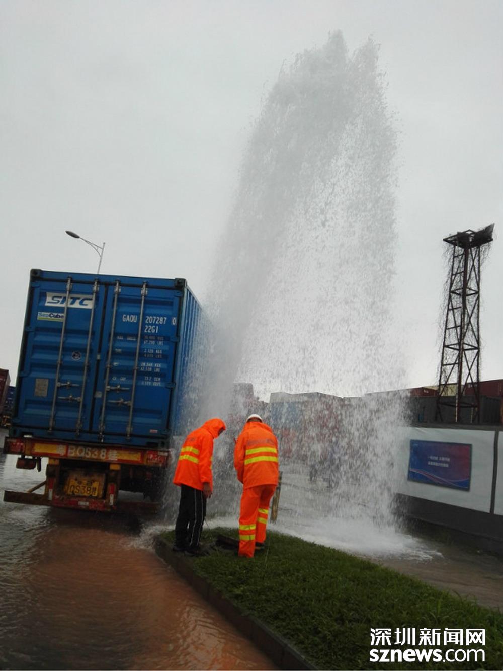 航海路(鹽港堆場(chǎng))旁消火栓被大貨車撞斷,前海分公司工作人員立即出動(dòng),及時(shí)搶修完畢