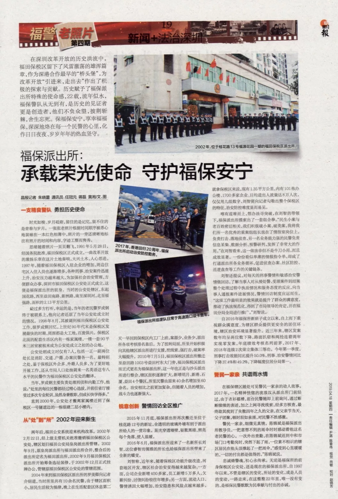 2010年7月5日,福田保稅區(qū)派出所搬遷至益田路1003號(hào)益田村東大門旁,福田保稅區(qū)派出所正式更名為福保派出所,這一年也正是與沙頭派出所進(jìn)行整合,轄區(qū)面積逐漸擴(kuò)大,新增明月、新港、石廈、益田4個(gè)警區(qū),所里民警由原來(lái)40余名增加至60余名。治安相比之前更加復(fù)雜,但隨著人員的增加,戰(zhàn)斗力也逐漸強(qiáng)大。