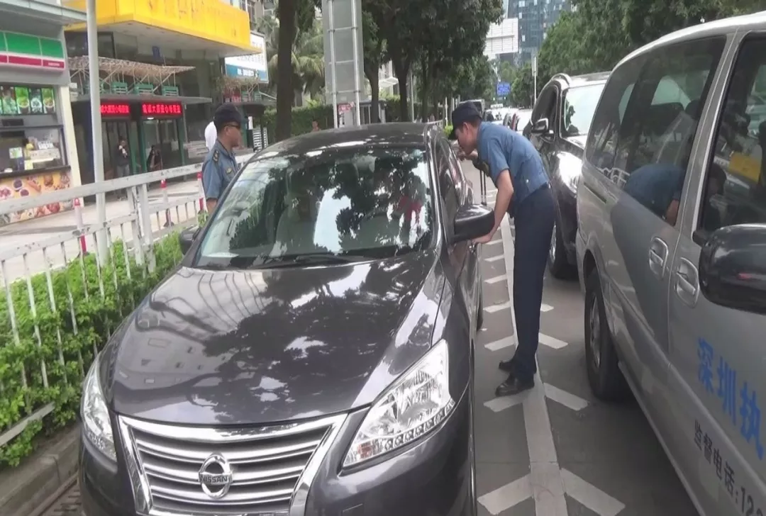 執(zhí)法人員例行對車牌號為粵BT***的小轎車進行檢查,司機將車窗降下,緩緩駛入待檢區(qū)域。