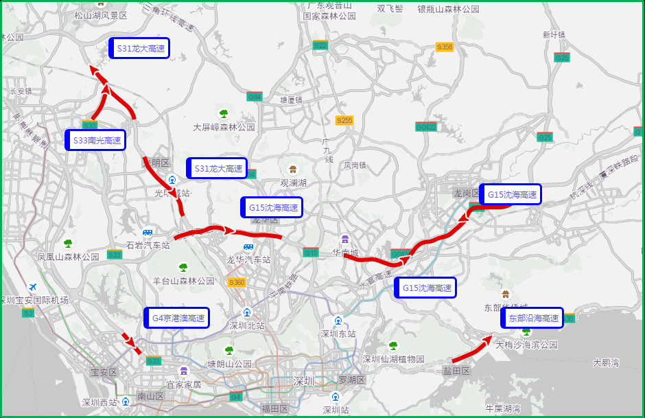 高德地圖交通大數(shù)據(jù)預(yù)測(cè),五一期間深圳出行最容易擁堵緩行的5條高速分別是G15沈海高速、S31龍大高速、S33南光高速、東部沿海高速、G4京港澳高速等高速部分路段。