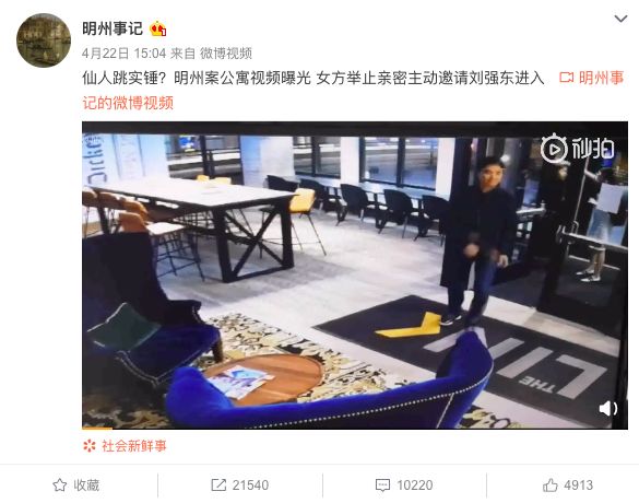 就在人們以為事件就此平息的時(shí)候,又爆出一系列和該案有關(guān)的料。首先是本案當(dāng)事人LIUJINGYAO宣布起訴京東集團(tuán)及劉強(qiáng)東。4月22日、23日微博上爆出監(jiān)控視頻以及劉強(qiáng)東美國(guó)律師和LIUJINGYAO之間電話(huà)談話(huà)的錄音。