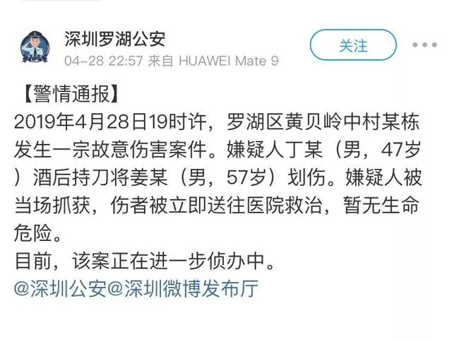 黃貝嶺發(fā)生持刀傷人事件,男子酒后行兇被當(dāng)場抓獲