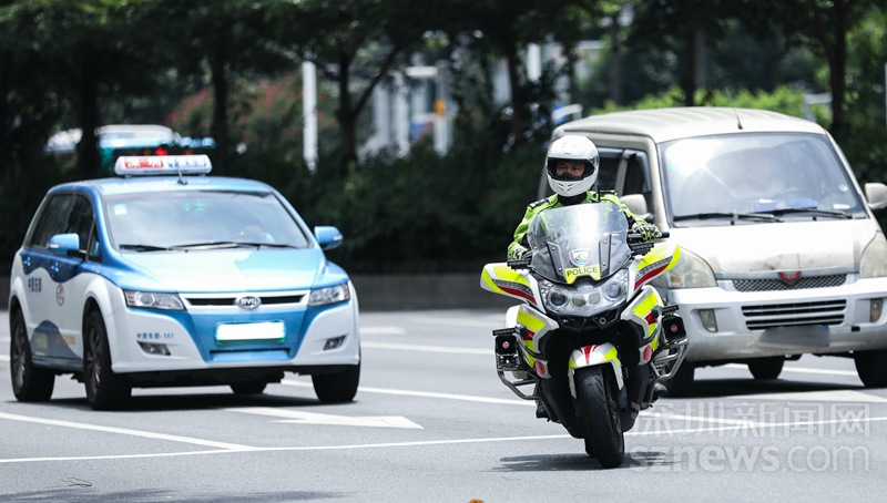 17時(shí),路面執(zhí)勤的深圳騎警(涂勝 鐘鴻冰 攝)