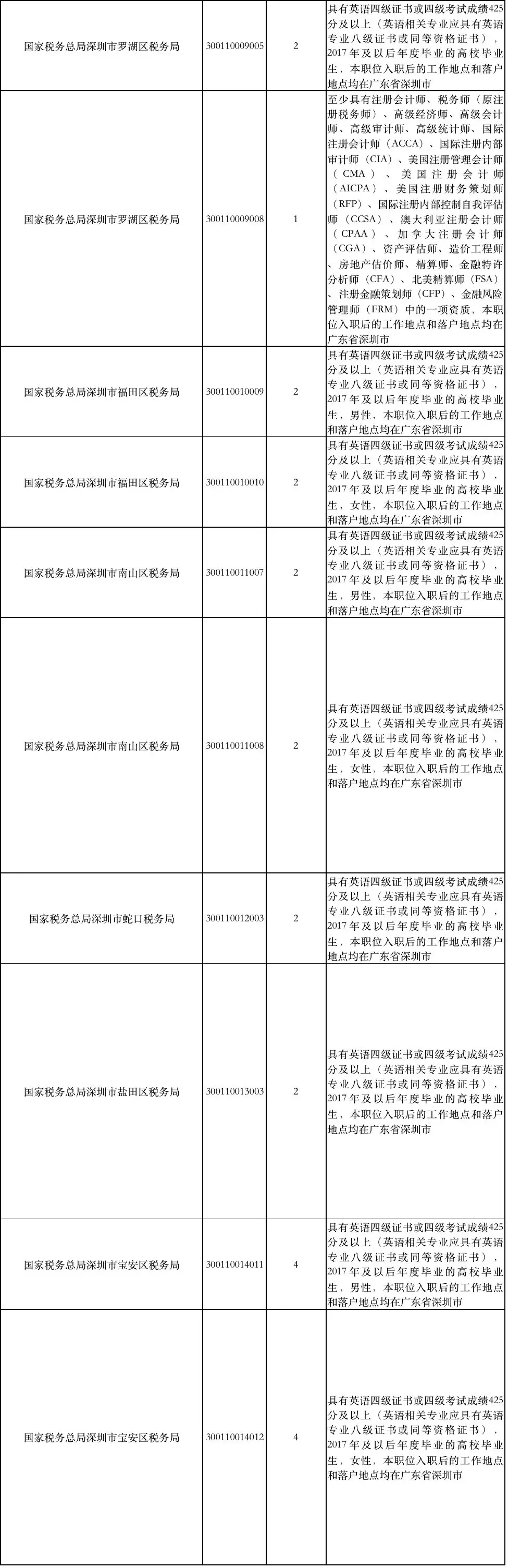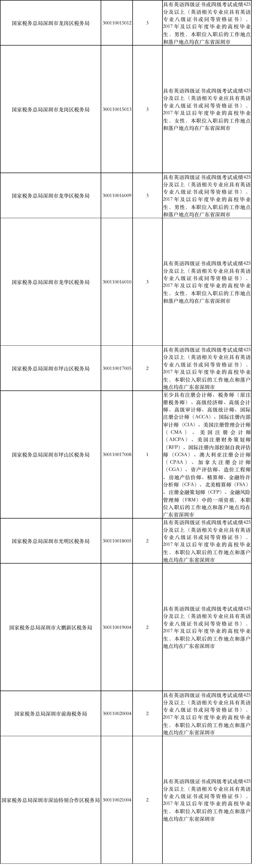 國(guó)家稅務(wù)總局深圳市稅務(wù)局補(bǔ)充錄用職位簡(jiǎn)表: