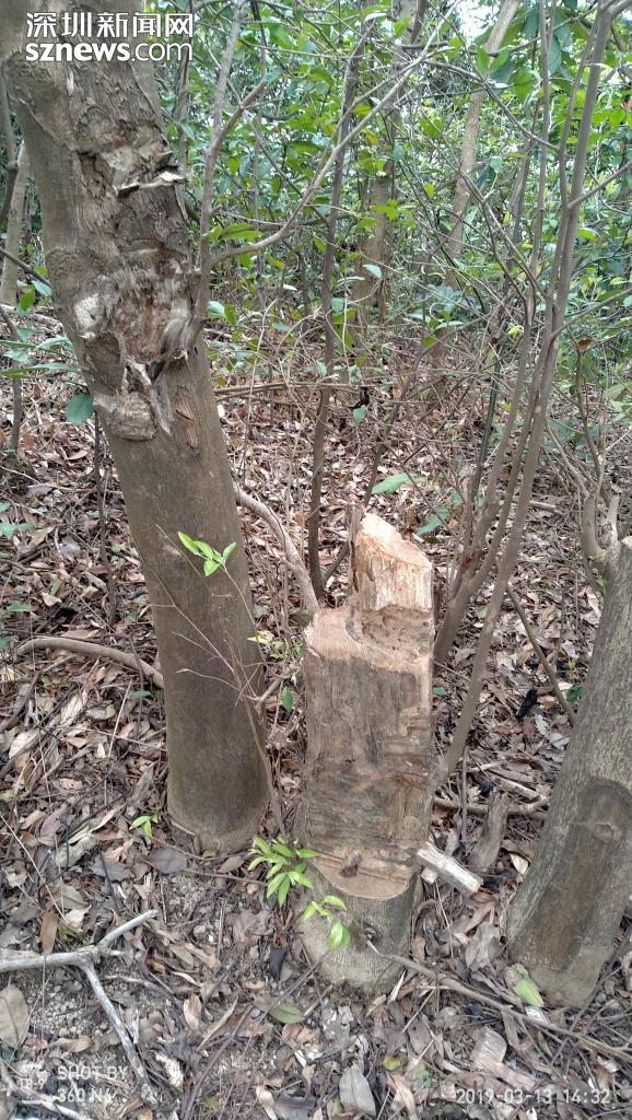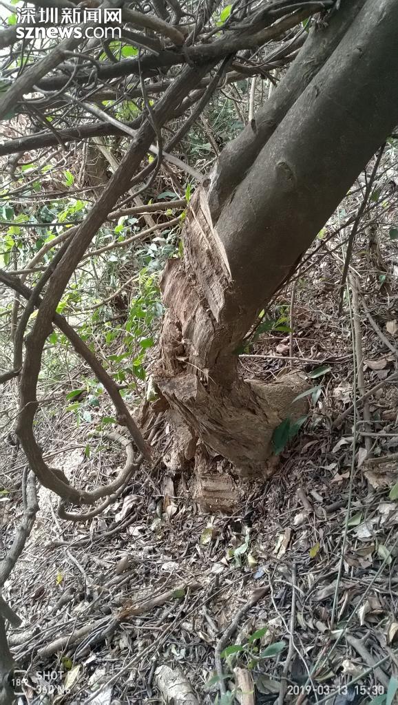 該網(wǎng)友提及的應(yīng)人石村位于深圳石巖,從地圖上看,其“后山”與羊臺(tái)山森林公園連為一體,是附近居民閑暇時(shí)度假踏青的重要選擇。據(jù)了解,網(wǎng)友“詩(shī)奴L”于今年3月中旬上山游玩,游玩途中發(fā)現(xiàn)原本茂盛的野生沉香樹大多遭人砍伐?!安环ǚ肿痈F盡一切手段,用鉆、削、劈、鋸等來(lái)對(duì)沉香樹進(jìn)行摧殘,這簡(jiǎn)直是屠殺式的洗劫!”該網(wǎng)友表示,看到這么多野生沉香樹被殘暴砍伐,真地讓人很氣憤。