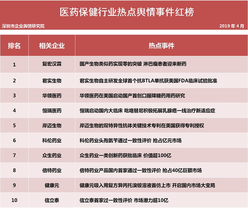 醫(yī)藥保健品行業(yè)熱點(diǎn)事件排行榜榜單說明: