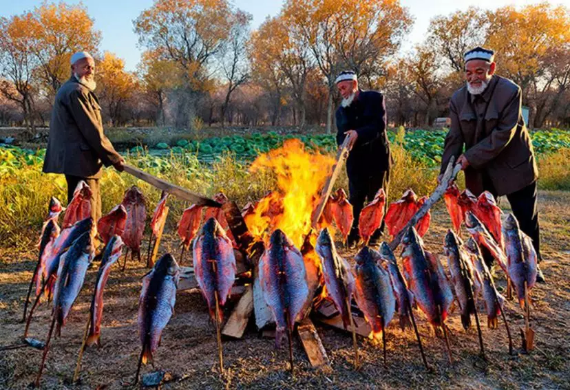 這里有一種新奇的烤魚方式