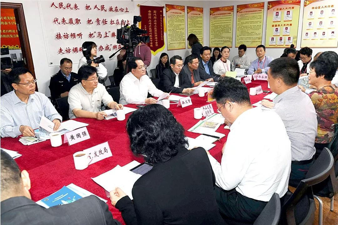 5月8日,南山街道月亮灣片區(qū)人大代表社區(qū)聯(lián)絡(luò)站召開代表議事會(huì)。深圳市人大常委會(huì)主任駱文智、南山區(qū)委書記王強(qiáng)、區(qū)人大常委會(huì)主任麥林光,與駐站市、區(qū)人大代表,居民代表圍繞“完善地鐵站點(diǎn)與地面交通接駁,緩解月亮灣片區(qū)居民出行難”主題進(jìn)行熱烈討論。