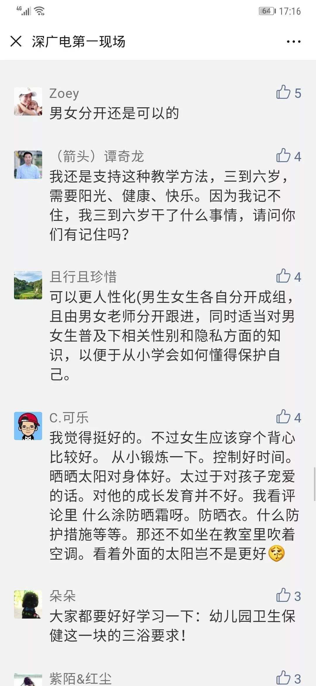 不過,也有家長認為,日光浴有益于孩子的成長,并且孩子年齡尚小,正處于純真無邪的時候,不應(yīng)該過早把成年人復(fù)雜的思想灌輸給孩子。