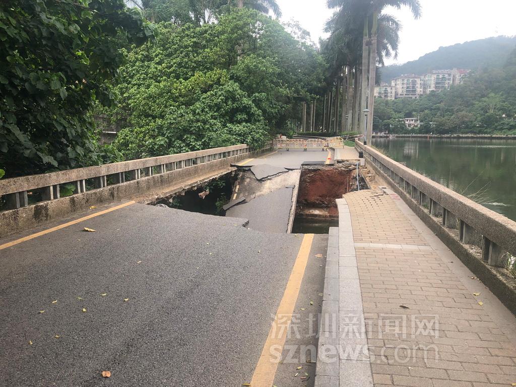 羅湖環(huán)湖路銀賓橋橋面坍塌現(xiàn)場(chǎng)