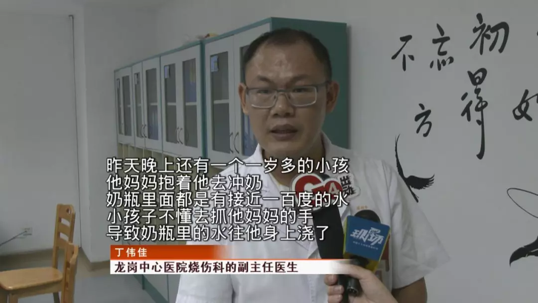當(dāng)時家長先倒好了,剛剛燒開的水,再用奶瓶準(zhǔn)備兌奶粉,結(jié)果開水被孩子打翻,就燙傷了孩子。