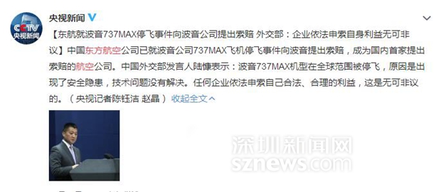東方航空公司向波音公司提起索賠相關(guān)報道頁面截圖