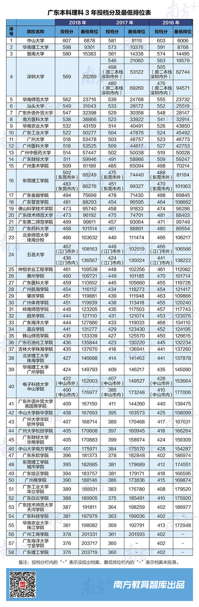 南方教育智庫(kù)獨(dú)家統(tǒng)計(jì)了2016-2018共3年廣東高校錄取分和最低排位,為廣東考生全面分析,排位多少名,能上廣東好大學(xué)?