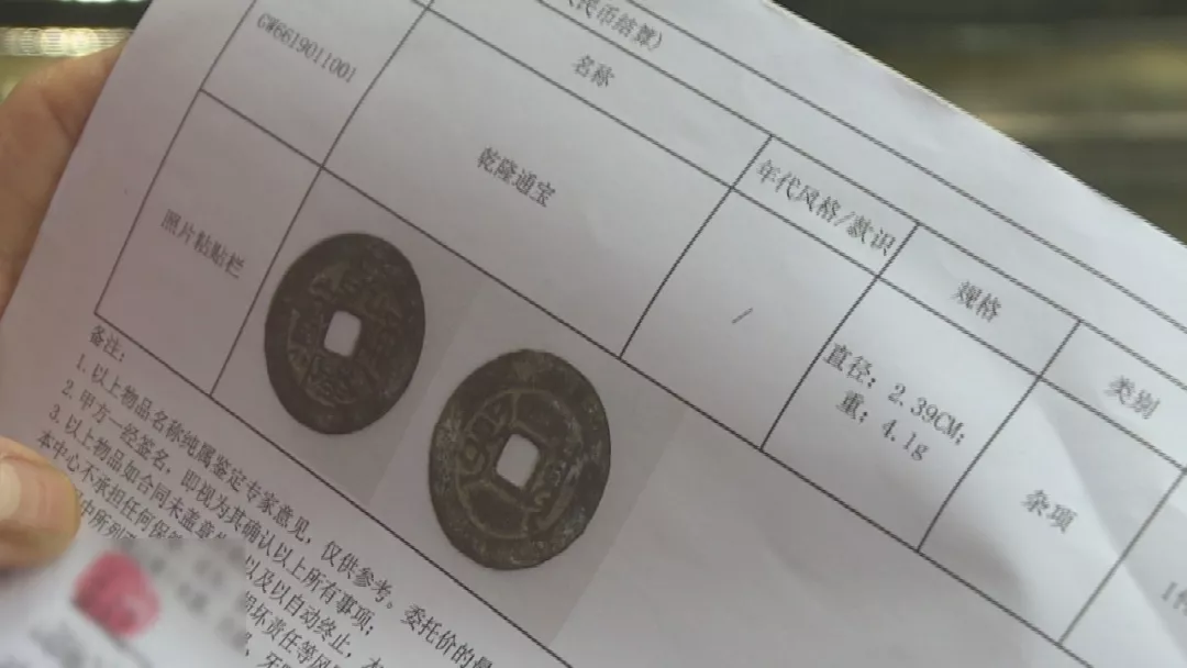 他的寶貝是一枚“乾隆通寶”錢幣