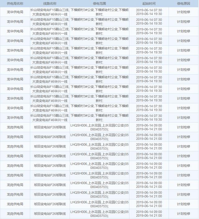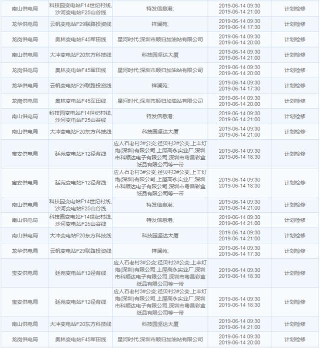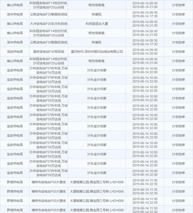 南方電網(wǎng)發(fā)布6月13日至6月16日深圳停電計劃 涉及多個區(qū)