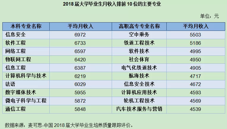 近日,畢業(yè)生平均月薪排行出爐了,2018屆大學(xué)畢業(yè)生月入4624元
