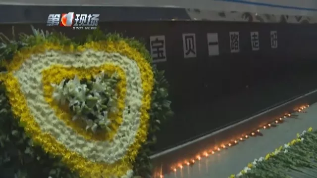 在廣場正中央,放立著一個心形花牌,大家在地上點上了蠟燭,墻面貼著“寶貝一路走好”。