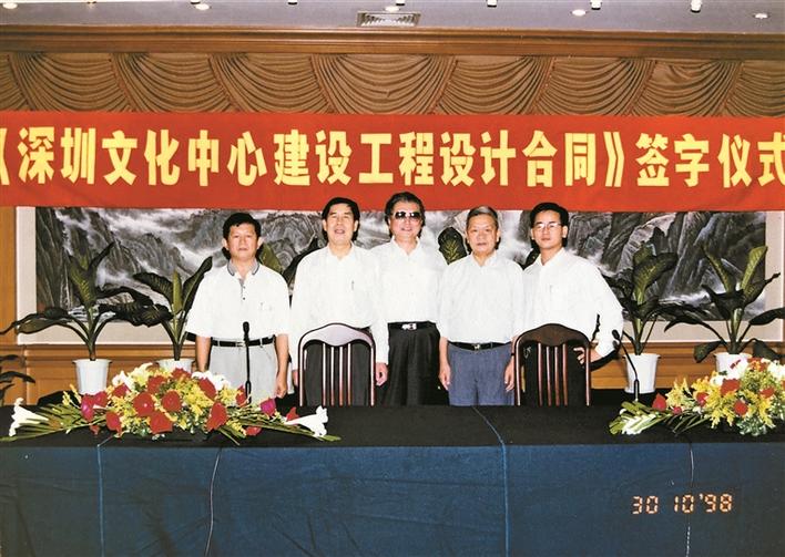 譚嗣英(左三)出席《深圳文化中心建設工程設計合同》簽字儀式。