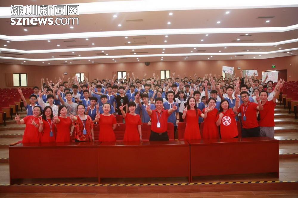 龍華區(qū)實驗學校的老師以及學生合影打氣,圖片攝于21日,由龍華區(qū)實驗學校的何小波老師提供。