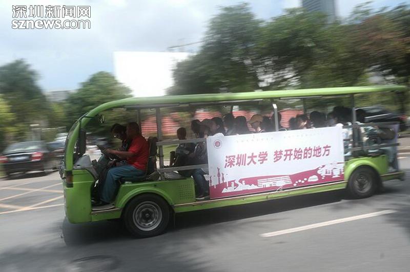 開(kāi)放日校方免費(fèi)開(kāi)放了電瓶車(chē)搭載學(xué)生家長(zhǎng)進(jìn)行參觀
