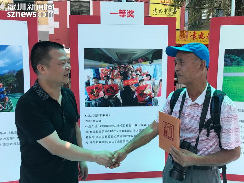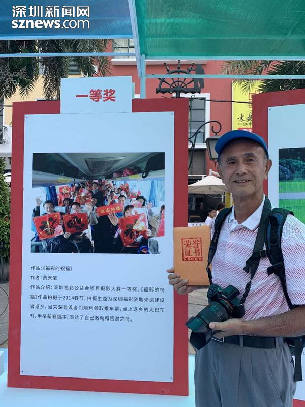 “我從報(bào)紙上看見深圳福彩舉辦的返鄉(xiāng)活動(dòng),覺得這個(gè)做公益獻(xiàn)愛心的活動(dòng)讓我很感動(dòng)。我想通過(guò)我的照片來(lái)彰顯深圳是一個(gè)大愛的城市,來(lái)讓大家看到深圳福彩的愛心宗旨?!?2歲的黃天肇憑借《福彩的祝福》作品榮獲本次大賽一等獎(jiǎng)。作為資深的攝影愛好者,他從深圳福彩舉辦“愛心福彩資助來(lái)深建設(shè)者春節(jié)返鄉(xiāng)”活動(dòng)開始,用相機(jī)記錄了十余年,“那個(gè)時(shí)候我都是用的傻瓜相機(jī)拍,獲獎(jiǎng)的作品就是我用傻瓜相機(jī)拍的,直到這兩年才開始用數(shù)碼相機(jī)?!睂?duì)于此次展覽,黃天肇認(rèn)為深圳福彩組織選出的98張照片,承載著深圳對(duì)孤寡老人、弱勢(shì)群體、特困戶的關(guān)心,彰顯了深圳人的大愛,也激發(fā)市民通過(guò)購(gòu)彩的方式奉獻(xiàn)愛心,他表示會(huì)一直用照片銘記這些珍貴的記憶。